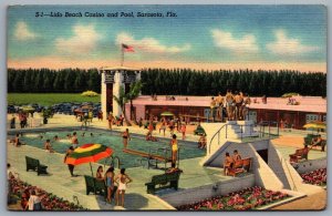 Postcard Sarasota FL c1940s Lido Beach Casino and Pool Defunct Linen
