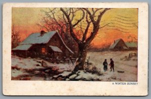 Postcard c1908 A Winter Sunset by W. R. Hearst CDS Cancel...