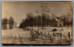 Postcard RPPC c1910s United States Winter Scene Farm House Sleigh Tracks