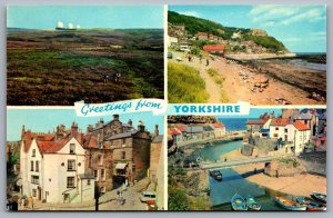 Postcard Yorkshire UK c1980s Greetings from Yorkshire Multi View Boats Beach Bay