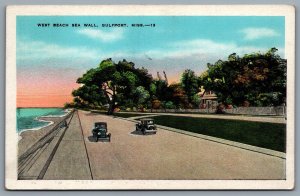 Postcard Gulfport MS c1920s West Beach Sea Wall Green Coa...