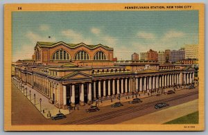 Postcard New York City NY c1933 Pennsylvania Station Railroad Station Old Cars