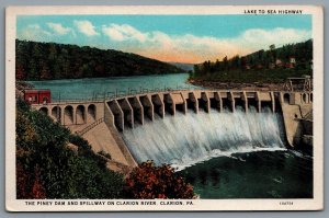 Postcard Clarion PA c1925 Lake to Sea Highway Piney Dam & Spillway Clarion River
