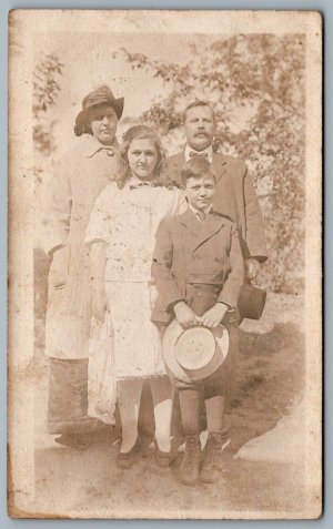 Postcard RPPC c1910s Four People Photo Of A Family Hats