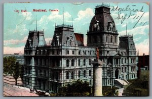 Postcard Montreal Quebec c1910s City Hall TOR & OTTAWA CPR RPO Cancel B