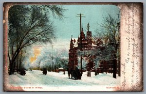 Postcard Montreal PQ c1905 Sherbrooke Street in Winter Sp...