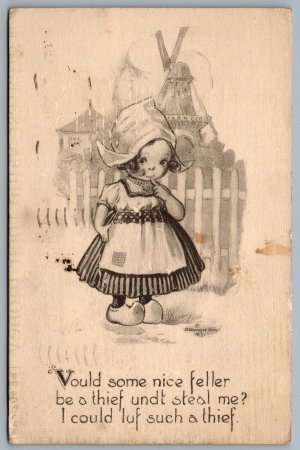 Postcard c1915 A/S Schlesinger Bros. Dutch Girl Vould Some Nice Feller...