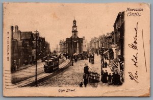 Postcard Newcastle United Kingdom c1902 Staffs High Street Tram Staffordshire