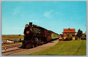 Postcard PA Railroad Route 741 Train At East Strasburg Station Old Cars
