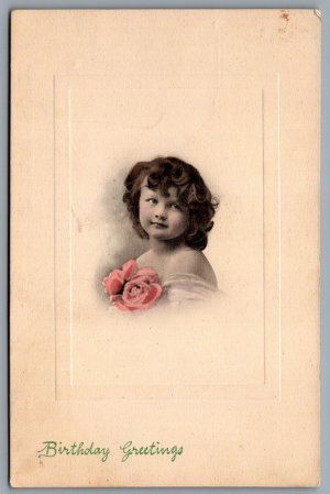 Postcard c1910s Birthday Greetings Young Girl With Rose Artistic Embossed Unused