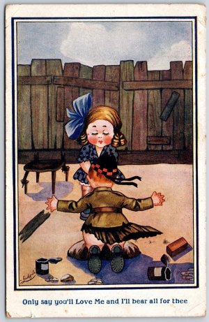 Postcard c1918 Artist Signed Ludgate Only Say You’ll Love Me and I’ll Bear All..