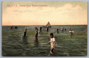 Postcard Angola NY c1908 Bathing Scene Bennett Homestead Bathers Boat