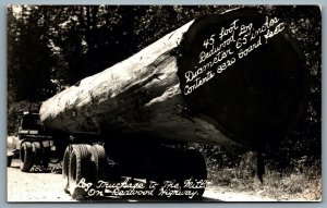 Postcard RPPC c1950s California 45 Foot Redwood Log Truckage to the Mill