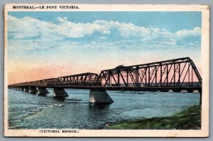 Postcard Montreal Quebec c1923 Le Pont Victoria - Train over St. Lawrence River