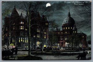 Postcard Montreal Quebec c1905 St. James Cathedral & YMCA Night View