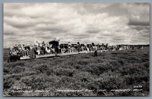 Postcard RPPC c1941 Newberry MI Tahquamenon Boat Trip Toonerville Trolley Train
