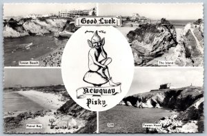 Postcard RPPC c1950s United Kingdom Multi Views Cornwall Newquay Pisky