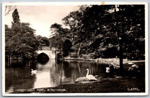 Postcard RPPC c1956 Birmingham United Kingdom Cannon Hill Park Swans