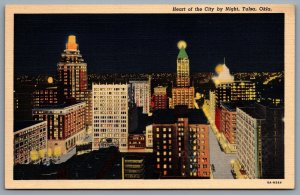 Postcard Tulsa OK c1938 Heart of the City by Night Ritz Hotel Night View Linen
