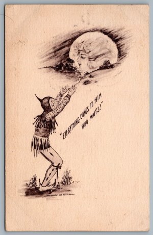 Postcard c1909 Arist Signed AS E.B. Scofield Everything Comes To Him Who Waits!