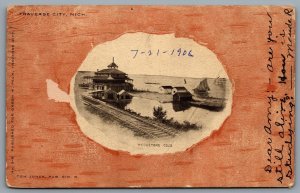 Postcard Traverse City MI c1906 Wequetong Club Wood Grain Effect Defunct