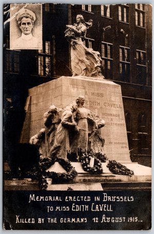 Postcard RPPC c1910s Brussels Belgium Edith Cavell Memori...