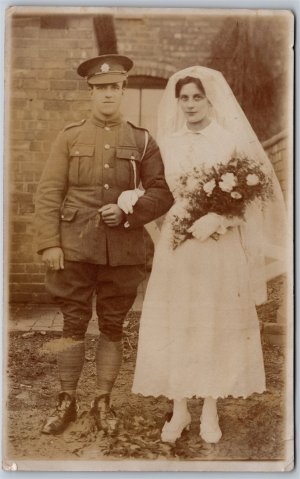 RPPC c1910s England Photo of Couple Soldier Wedding? by J...
