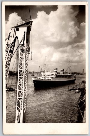 Postcard RPPC c1950s Rotterdam Netherlands Harbor View SS...