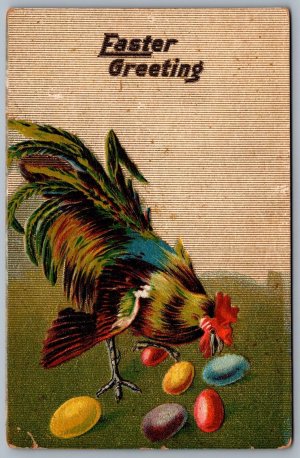 Postcard c1911 Easter Greeting Embossed Colorful Rooster with Coloured Eggs