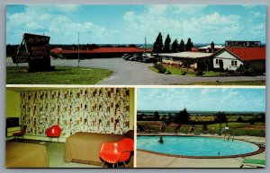Postcard South Cadillac MI c1960s McGuires Motel And Grill Multi View Pool