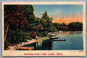 Postcard Carp Lake MI c1930s Greetings From Carp Lake Can...