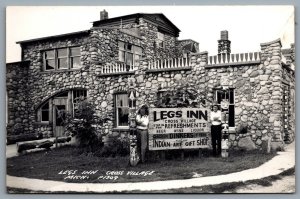 Postcard RPPC c1950s Cross Village MI Legs Inn View Of Ex...