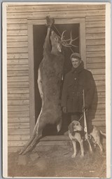 Postcard RPPC c1910s Man with Buck Deer Kill Shotgun and Dog