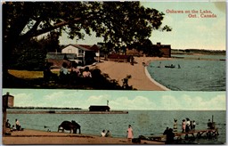 Postcard Oshawa Ontario c1910s Scenic Lake Beach Dual View