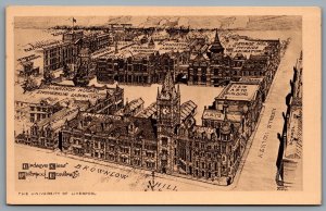 Postcard UK c1920s University of Liverpool Arist Signed Birds Eye View Campus
