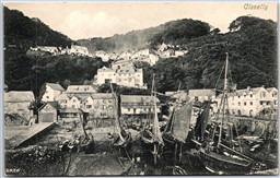 Postcard Clovelly England View of Harbour Quay Masted Fis...