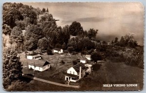Postcard RPPC c1953 Harlowe Ontario Aerail View Hills Viking Lodge Frontenac Co.