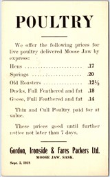 Postcard c1918 Moose Jaw Saskatchewan Gordon Ironside & Fares Packers Poultry