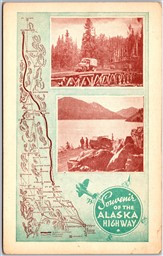 Postcard c1940s Souvenir of the Alaska Highway Multi Views Map