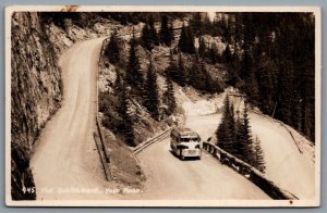 Postcard RPPC c1930s Yoho National Park BC The Switchback Yoho Road Old Bus