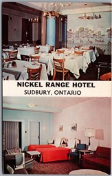 Postcard Sudbury Ontario c1960s Nickel Range Hotel MCM Furniture Dual View