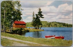Postcard Sault Ste. Marie Ontario c1954 Woodland Beauty Scenic View Boats Cabin