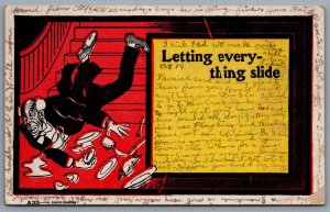 Postcard Comic c1906 Letting Everything Slide Waiter Spli...