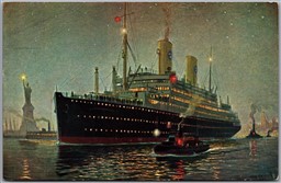 Postcard Swedish American Line T.M.S. Kungsholm Arriving in New York at Night