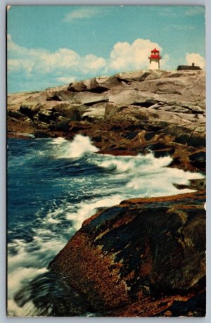 Postcard Peggy’s Cove NS c1950s Breakers at Peggys Cove Lighthouse Margarets Bay