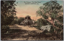 Postcard Grand Canyon Arizona The Chimney Rest House Hand Colored by Fred Harvey