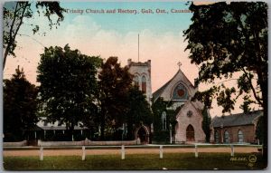 Postcard Galt Ontario c1910s Trinity Church and Rectory Waterloo Region