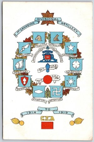 Postcard WW1 Era 1st Canadian Divisional Artillery CFA 1914 to 1919 Battery List