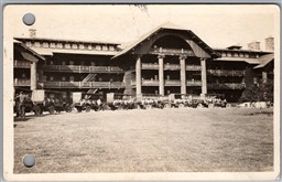 Postcard RPPC c1920s Glacier Park Montana view of Glacier Park Lodge Old Cars