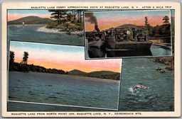 Postcard Raquette Lake New York Ferry Approaching Dock Adirondacks Multi Views